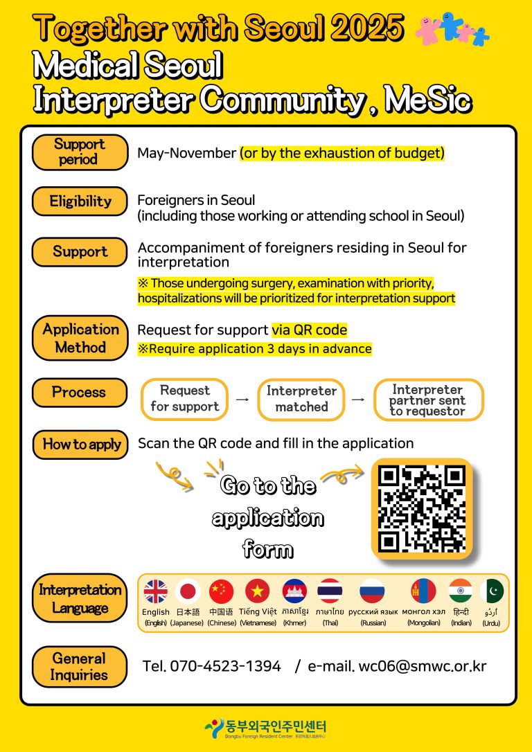 서울시에 거주하는 다문화가족과 외국인주민들이 언어 장벽 없이 병원을 이용할 수 있도록 서울시에서는 2025년 5월부터 12월까지 의료통역 서비스를 제공합니다.