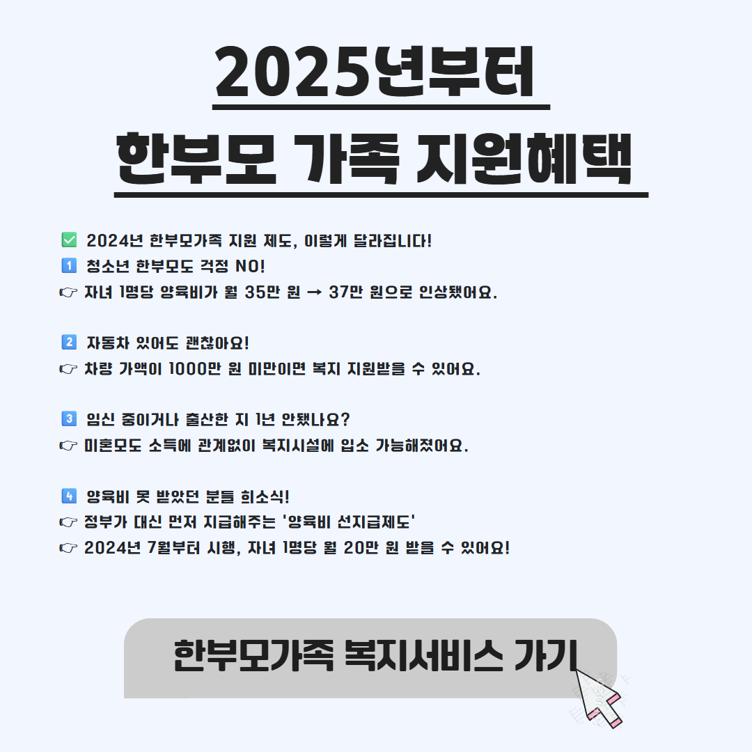 2025년부터 한부모가정을 위한 다양한 복지 혜택이 확대 시행됩니다.